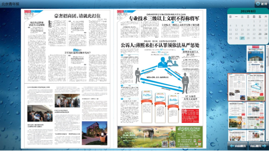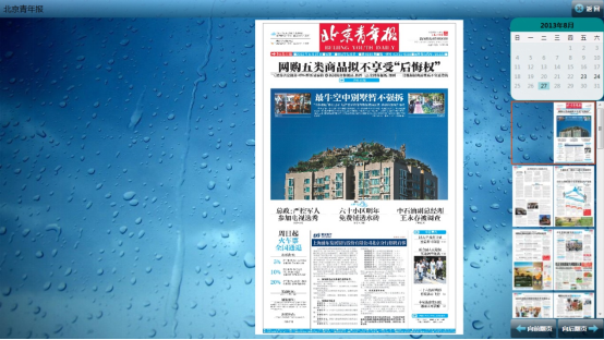 3、界面右側(cè)包含:日歷、報(bào)紙縮略圖瀏覽和翻頁按鈕。