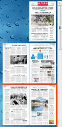 2、 縮略圖翻頁:點(diǎn)擊界面右側(cè)的報(bào)紙縮略圖,實(shí)現(xiàn)翻頁??s略圖外有紅框,表示當(dāng)前正在顯示的報(bào)紙內(nèi)容頁面。