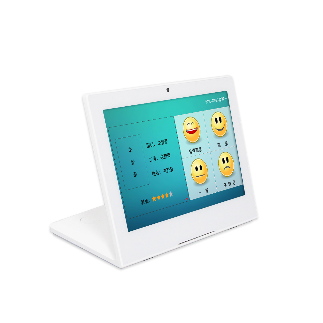 員工上崗時(shí),在員工客戶端或控制器上輸入自己的工號(hào)登錄評(píng)價(jià)系統(tǒng)確認(rèn)當(dāng)前員工身份,以便于評(píng)價(jià)數(shù)據(jù)具體到個(gè)人, 客戶走近柜臺(tái)時(shí),員工按動(dòng)問(wèn)候按鈕,評(píng)價(jià)器播放語(yǔ)音:“您好,歡迎光臨”。員工辦理完業(yè)務(wù)后,按動(dòng)評(píng)價(jià)按鈕,評(píng)價(jià)器語(yǔ)音提示顧客“請(qǐng)您對(duì)我的工作給予評(píng)價(jià)”,客戶選擇按鍵評(píng)價(jià)后,評(píng)價(jià)器提示語(yǔ)音“謝謝”。(語(yǔ)音提示可自定義;員工登陸及觸發(fā)機(jī)制可通過(guò)系統(tǒng)開(kāi)放接口對(duì)接到用戶自己的OA系統(tǒng),可實(shí)現(xiàn)一筆業(yè)務(wù)對(duì)應(yīng)一筆評(píng)價(jià)以及自動(dòng)觸發(fā)評(píng)價(jià)功能。)
