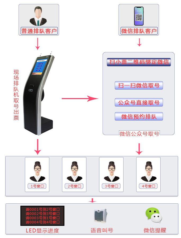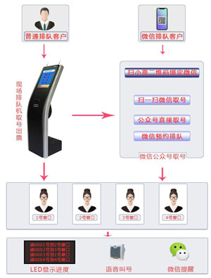 在傳統(tǒng)排隊(duì)方式的基礎(chǔ)上,客戶(hù)利用智能手機(jī)通過(guò)關(guān)注微信公眾平臺(tái)進(jìn)入達(dá)林科技微信排隊(duì)系統(tǒng),進(jìn)行業(yè)務(wù)辦理排隊(duì)取號(hào)、預(yù)約、查看進(jìn)度等操作。