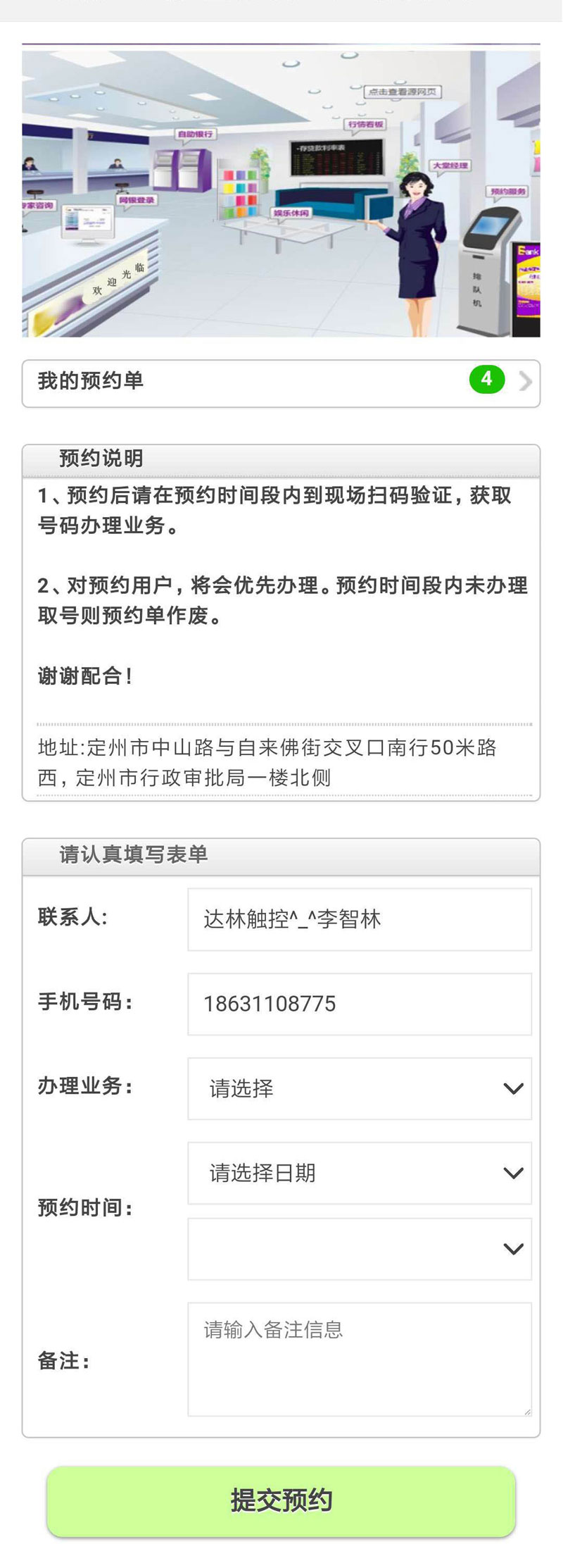 第四步,客戶(hù)填寫(xiě)預(yù)約信息,如業(yè)務(wù)類(lèi)型、時(shí)間等;